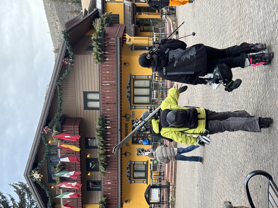 - "A group of people dressed for skiing stand on a cobblestone path, with a yellow building behind them" by FM-8uZDn2, licensed under CC BY 4.0