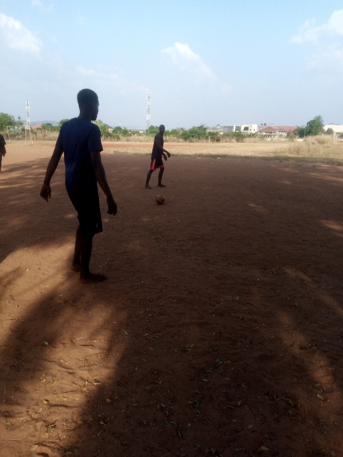 - "Two young men are playing soccer on a bare dirt field" by FM-vKwjt2, licensed under CC BY 4.0