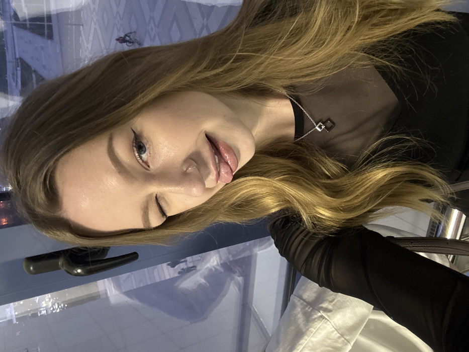 - "The image depicts a young adult female from the chest up, positioned indoors, taking a selfie against a large window overlooking an urban outdoor scene at dusk or night" by FM-l61S32, licensed under CC BY 4.0