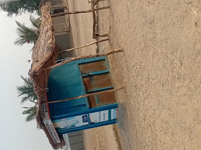 - "A light blue, kiosk-style structure with a thatched roof stands on unpaved, dry earthen ground in Ayama, Nigeria" by FM-TAum93, licensed under CC BY 4.0