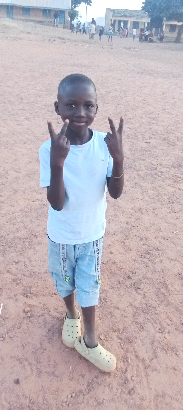 - "A young boy stands smiling on reddish-brown dirt, giving peace signs with both hands" by FM-gYzzh1, licensed under CC BY 4.0