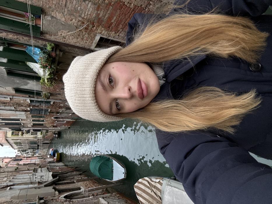 - "A young woman is depicted in a selfie, positioned on a bridge overlooking a narrow canal in Venice, Italy" by FM-yjK1X2, licensed under CC BY 4.0