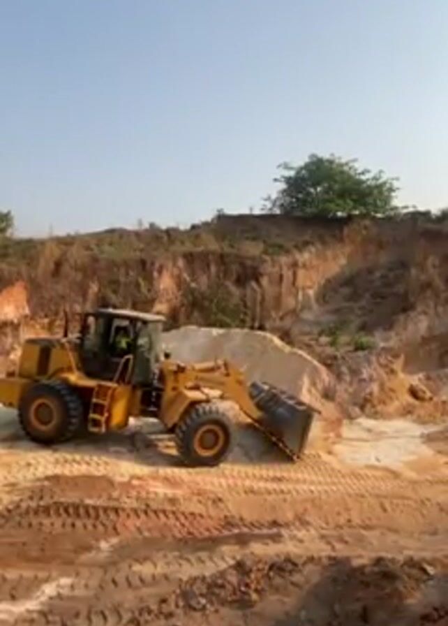 - "yellow wheel loader stationary on a dirt road within what looks like a quarry or an excavation site" by FM-6XMFv1, licensed under CC BY 4.0