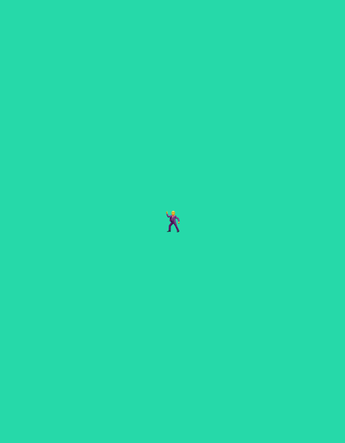A single small figure stands near the center of a solid green background. The figure appears to be a person wearing colorful clothing, possibly a suit, and raising one arm. The person’s features are indistinct due to their small size relative to the overall image. The background is a uniform, bright shade of green with no variation in color or texture. The image is dominated by the empty green space surrounding the figure.