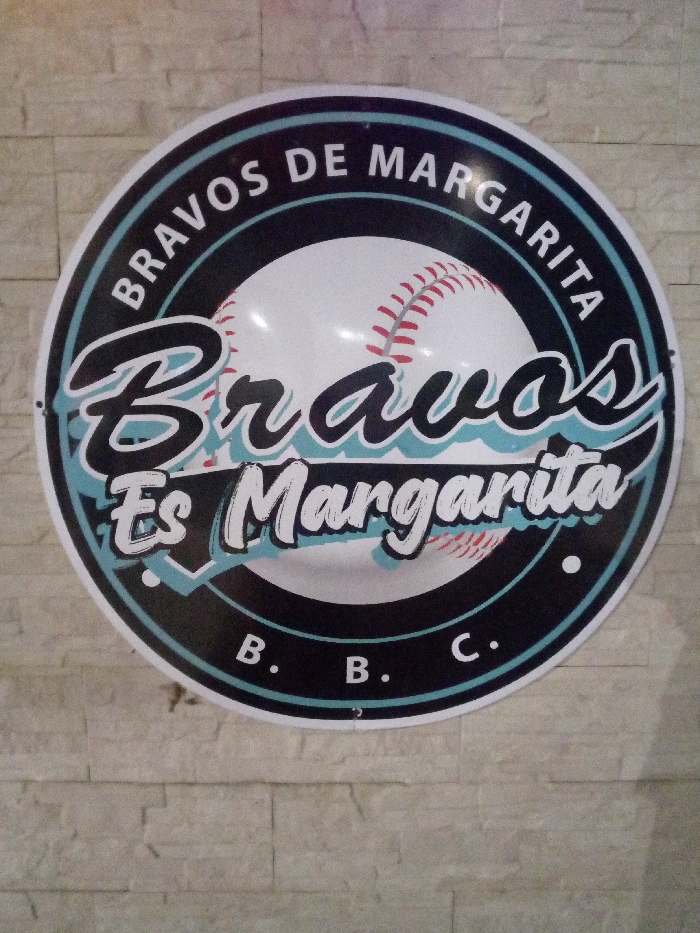The circular sign displays "BRAVOS DE MARGARITA" around the top arc and "B