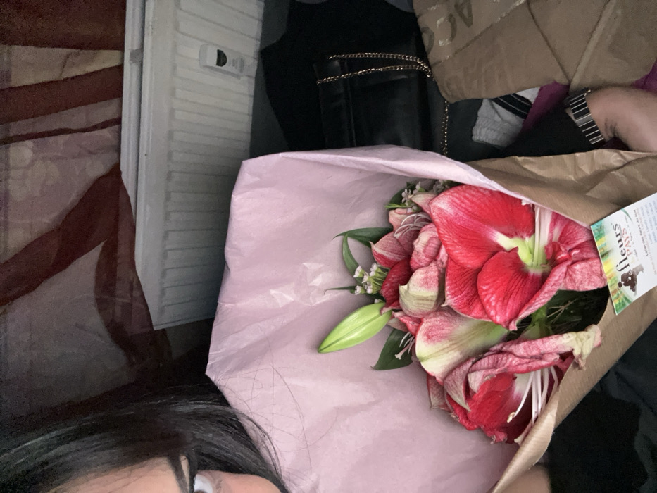 - "The image displays a close-up, angled view of a person holding a bouquet of flowers in an indoor setting within Strasbourg, France" by FM-UV3cT2, licensed under CC BY 4.0