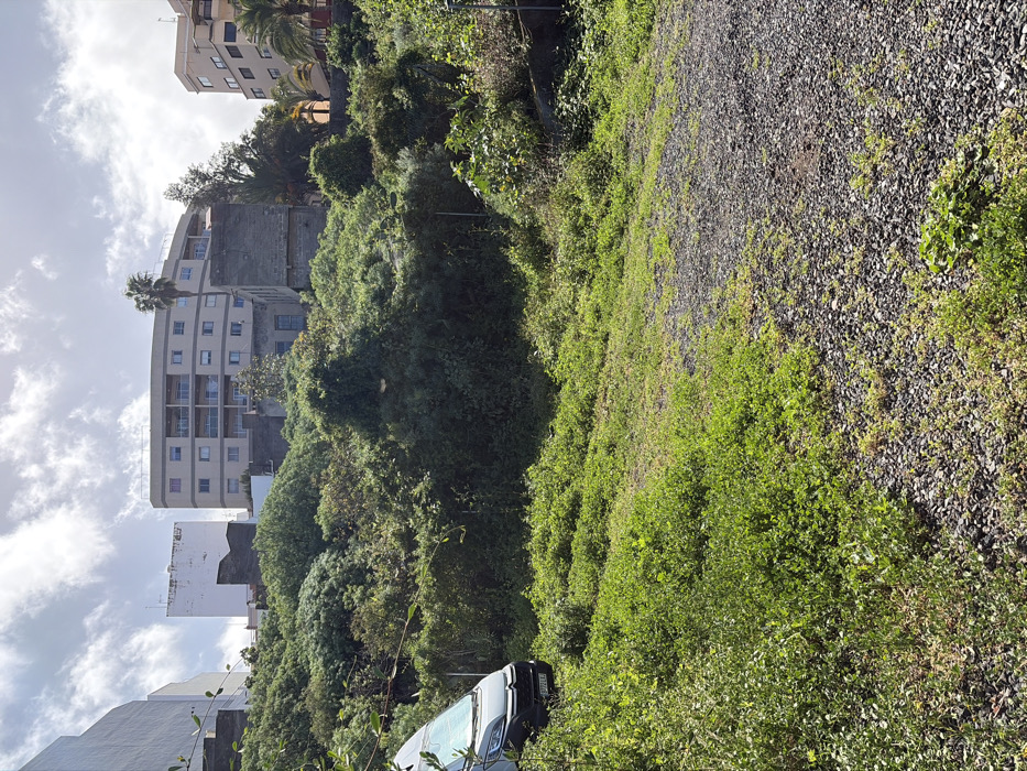 An outdoor scene in Icod de los Vinos, Spain, depicts an unpaved area transitioning to a steep, overgrown hillside with urban structures in the background under a partly cloudy sky