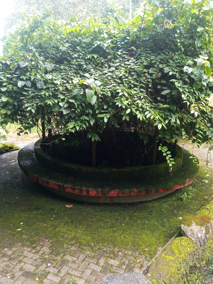 - "The scene depicts an outdoor area in Cimacan, Indonesia, focused on a circular, tiered concrete planter containing dense, green foliage" by FM-HcztE3, licensed under CC BY 4.0