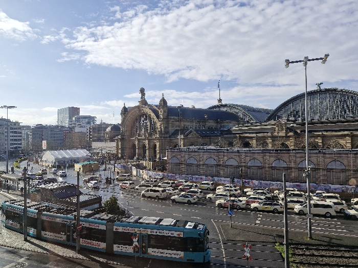 - "This image depicts a wide-angle, slightly elevated view of the urban streetscape in front of the Frankfurt Hauptbahnhof (main train station) in Frankfurt am Main, Germany" by FM-WNeXD3, licensed under CC BY 4.0