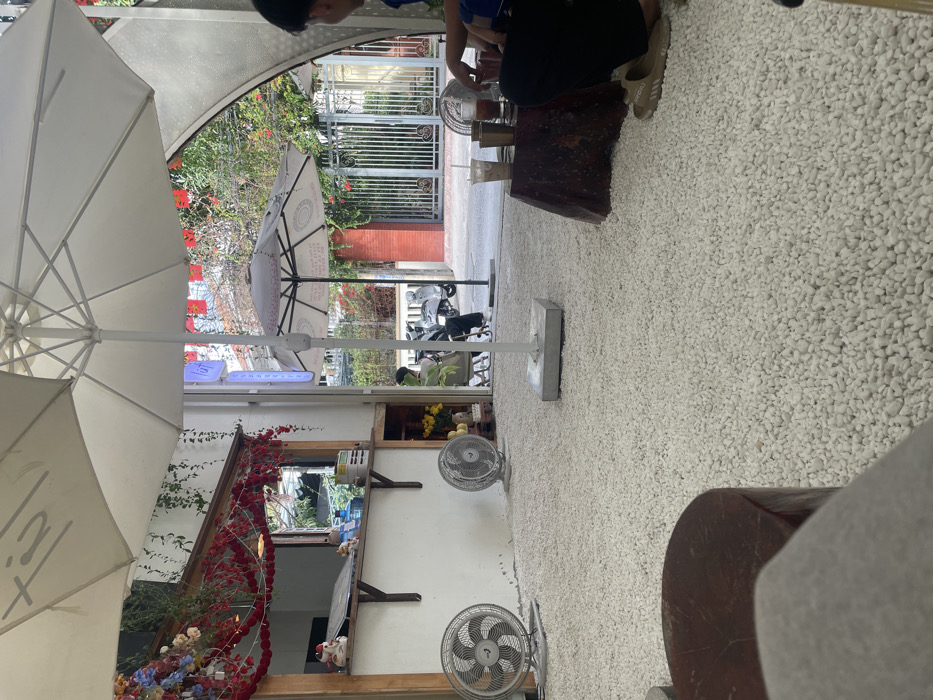The image displays an outdoor cafe space in Nha Trang, Vietnam