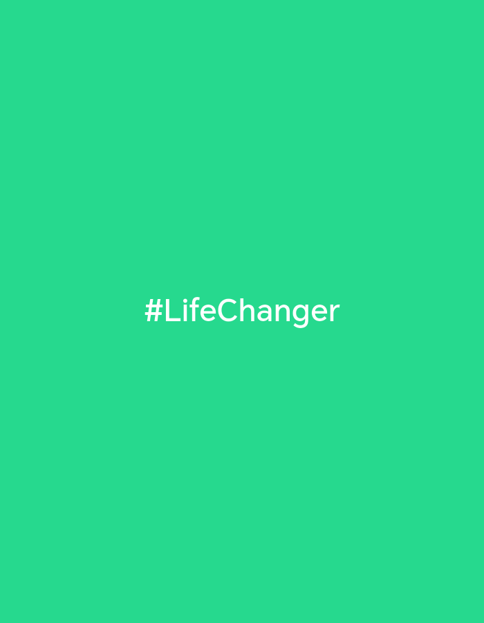 The image displays a solid, uniform teal-green background. Centered horizontally and slightly below the vertical midpoint, the white text "#LifeChanger" is rendered in a sans-serif typeface. No other subjects, objects, people, or discernible environmental elements are present. The scene is an abstract graphic. No specific location in Riga, Latvia, can be determined from the visual content provided.