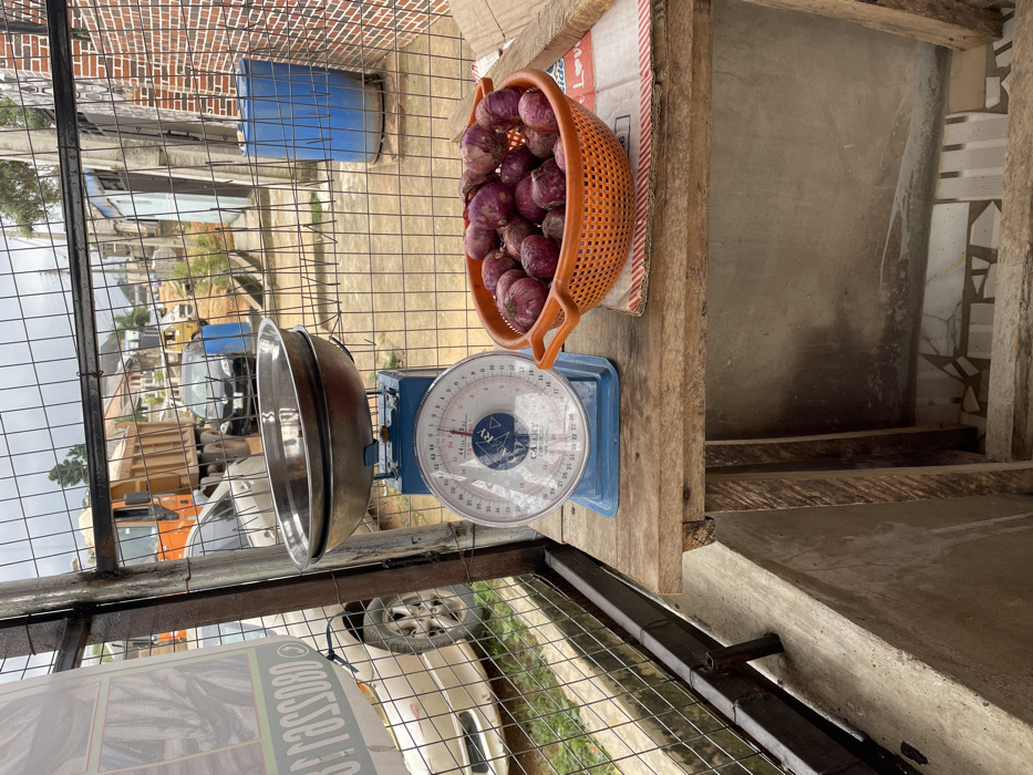 The scene depicts an outdoor vendor's stall or roadside selling point