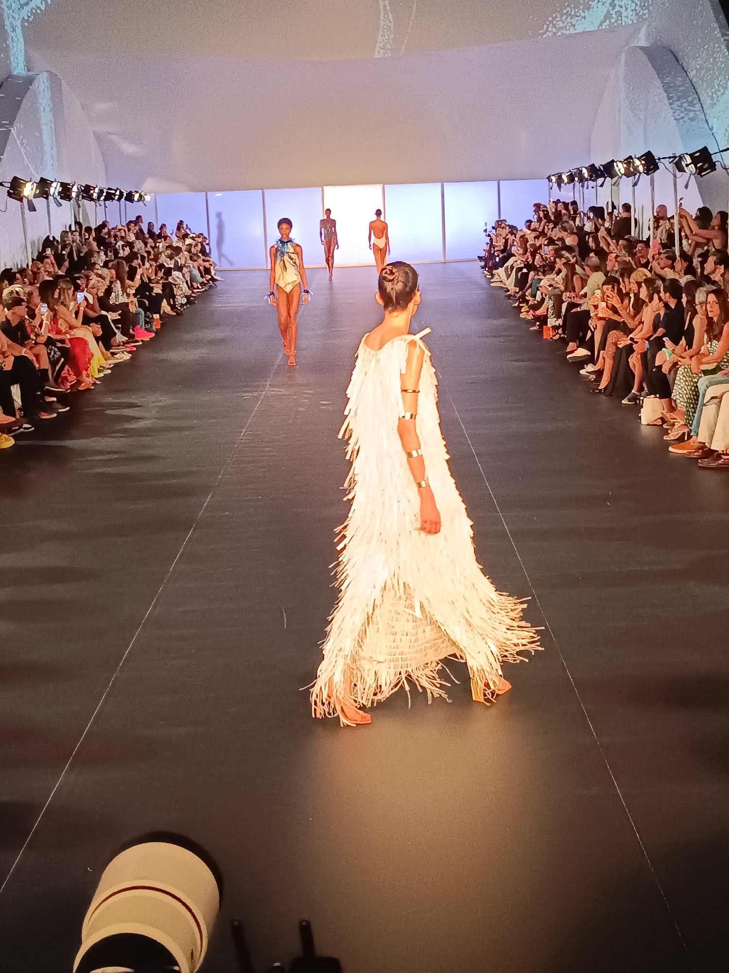 The image captures a fashion show runway in Rio De Janeiro, Brazil