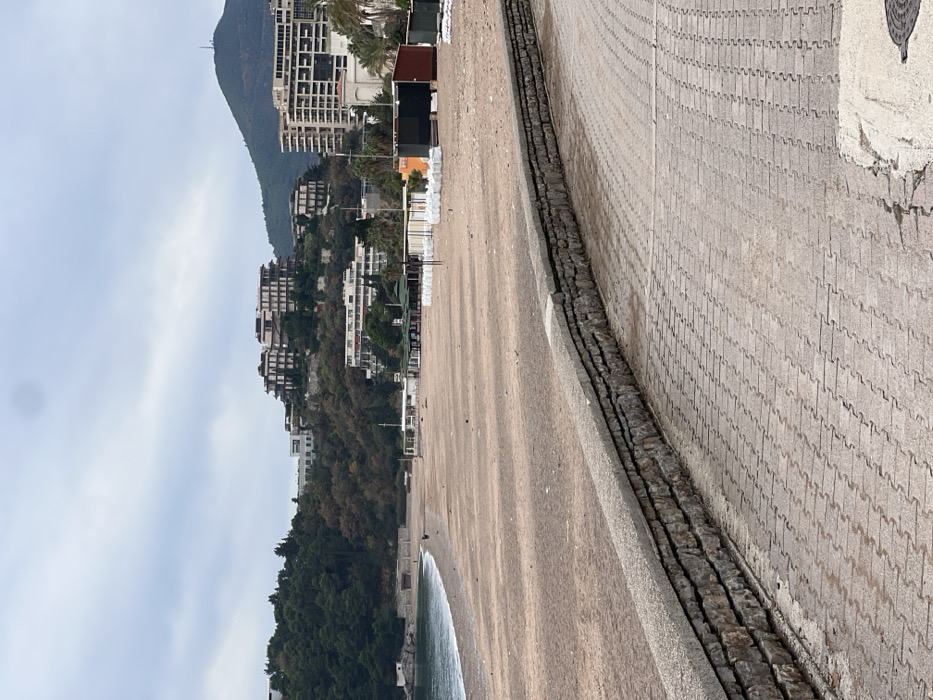 - "The image depicts a wide view of a sandy beach and a paved promenade in Boreti, Montenegro, under an overcast sky" by FM-MKUcI3, licensed under CC BY 4.0