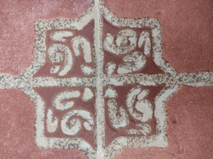 This image presents a detailed, overhead view of a tiled surface in Lo Ferro, Spain