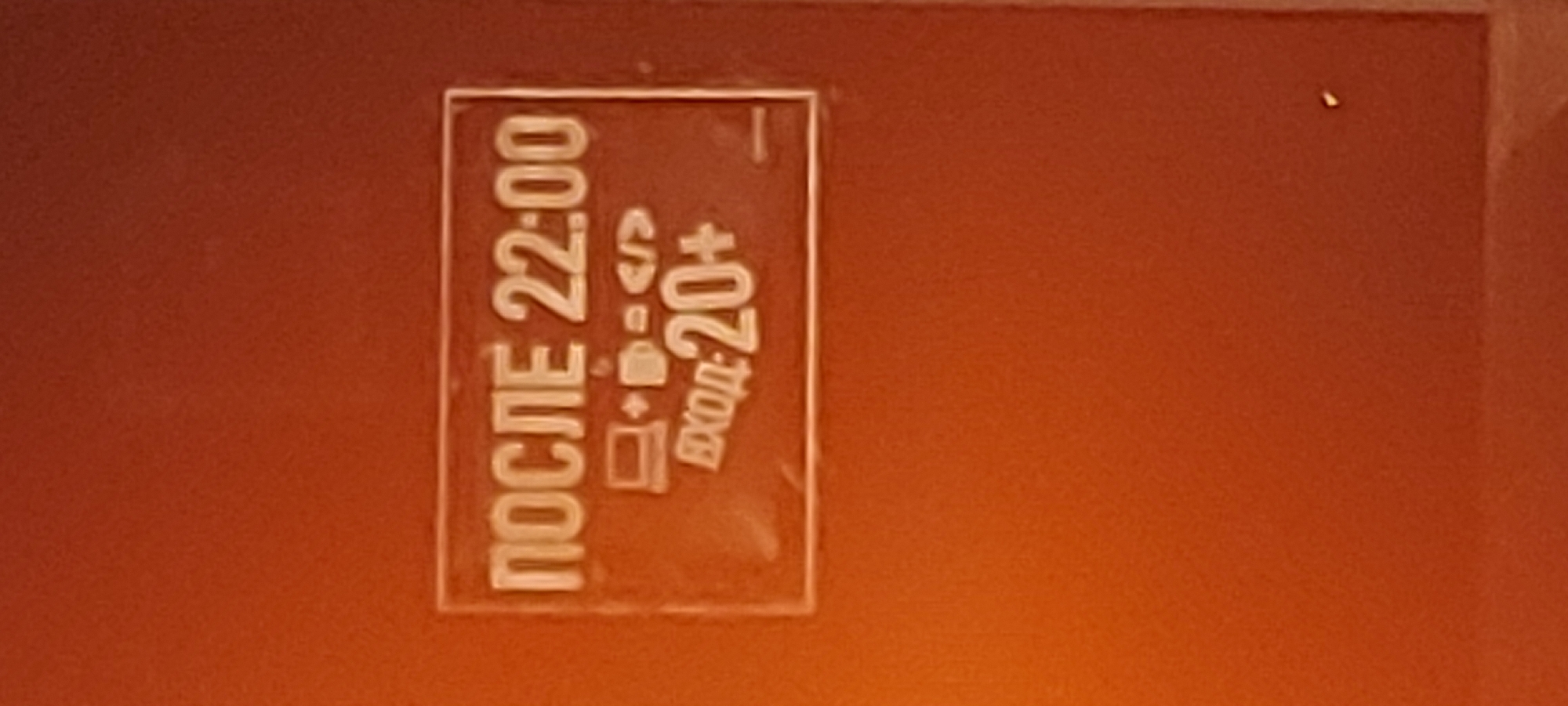 On an orange wall, a rectangular sign reads "После 22:00" (After 22:00)