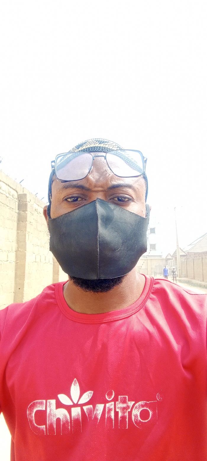 An adult male with dark skin is depicted in a brightly lit outdoor scene in Gayawa, Nigeria