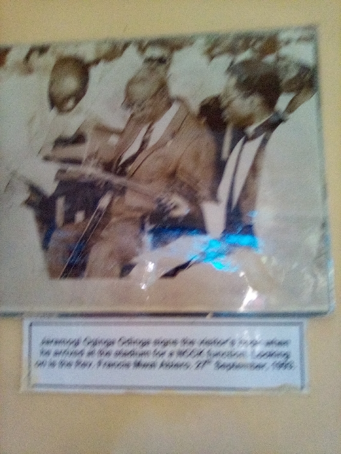 A framed, sepia-toned or monochrome photograph is displayed on a light yellow wall in South Sakwa ward, Kenya