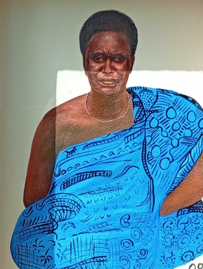An image depicts a painted portrait of an adult individual, likely female, situated in Unguwar Shanu, Nigeria