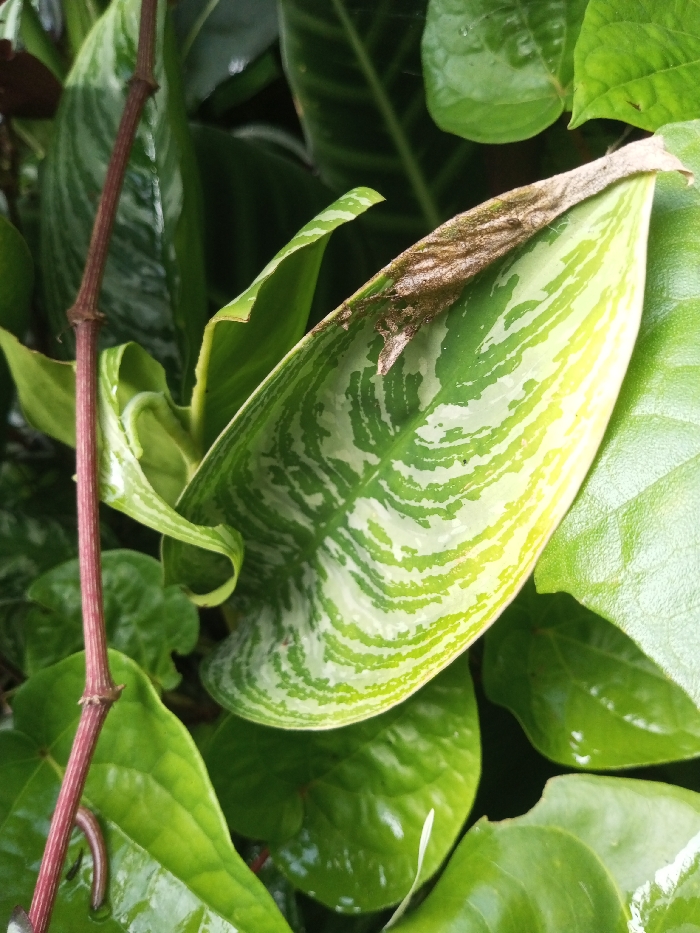 - "A close-up, vertical shot of dense foliage located in Salai Har Htan, Myanmar, depicts a prominent variegated leaf in the central-right foreground" by FM-VtE8N2, licensed under CC BY 4.0