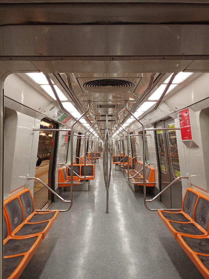 - "The image displays the interior of an empty Santiago Metro subway train car, situated within the city of Puente Alto, Chile" by FM-Luk4a2, licensed under CC BY 4.0