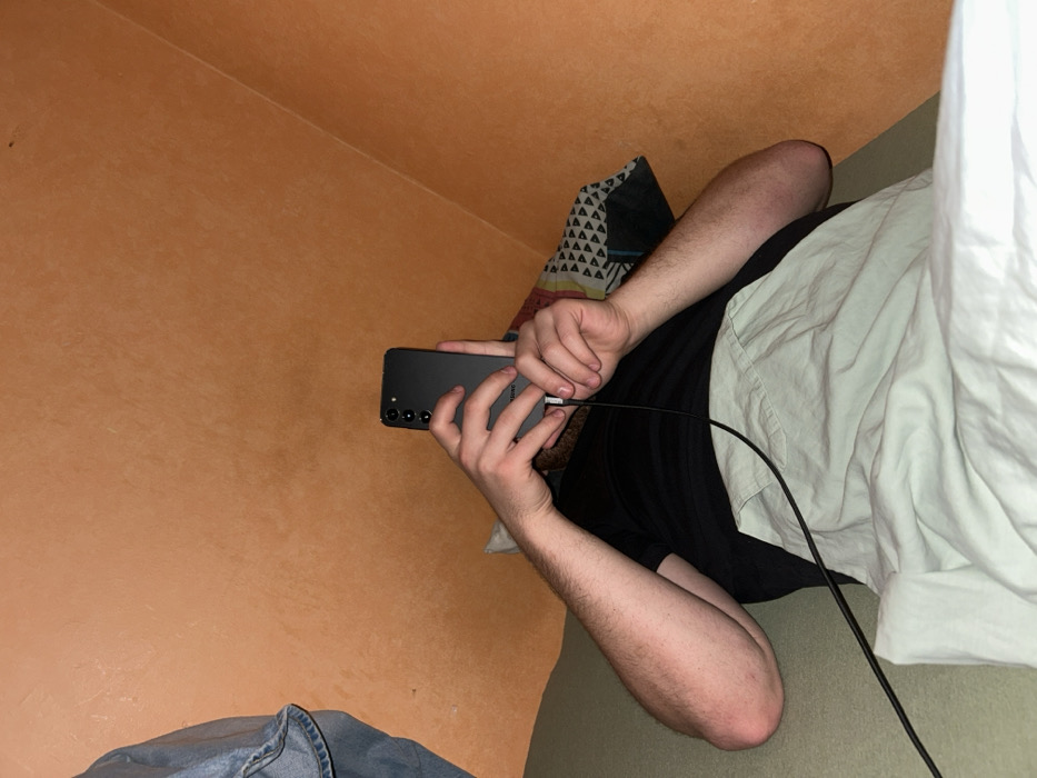 - "A person is lying in bed, likely sideways, with a phone plugged into a charger" by FM-C5pvp1, licensed under CC BY 4.0