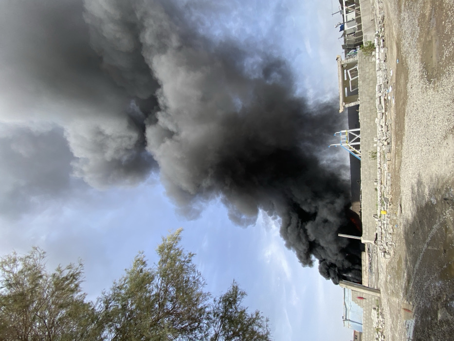 - "This image depicts a large-scale fire producing a massive, dense column of black smoke ascending vertically into a partially cloudy, light blue sky in the city of Khvoshab, Afghanistan" by FM-B5wmg2, licensed under CC BY 4.0