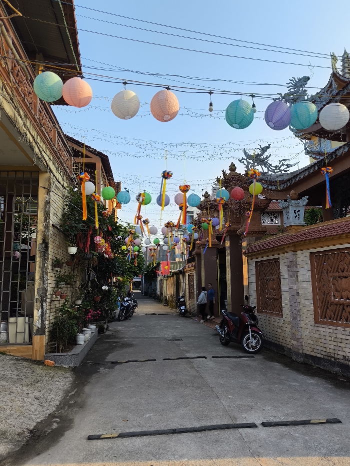 - "The image displays a decorated alleyway in Thành phố Quảng Ngãi, Vietnam, observed under a clear blue sky" by FM-ETbE83, licensed under CC BY 4.0
