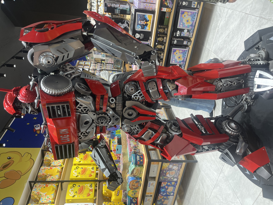 An indoor, well-lit retail environment in Huixquilucan de Degollado, Mexico, features a large, humanoid robot statue centrally positioned