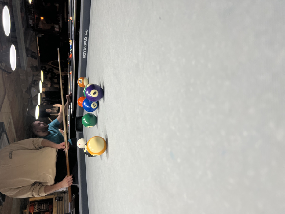 This image depicts an interior scene within a billiards hall located in Sofia, Bulgaria