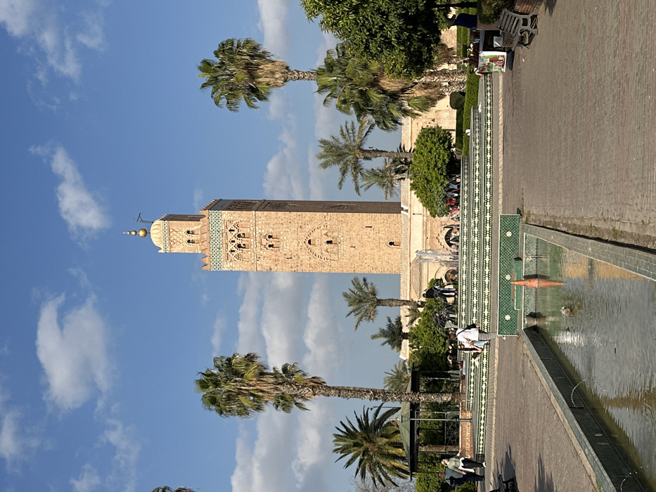 - "The image depicts the Koutoubia Minaret and surrounding gardens in Marrakesh, Morocco, under a partially cloudy blue sky during daylight hours" by FM-uegzv2, licensed under CC BY 4.0