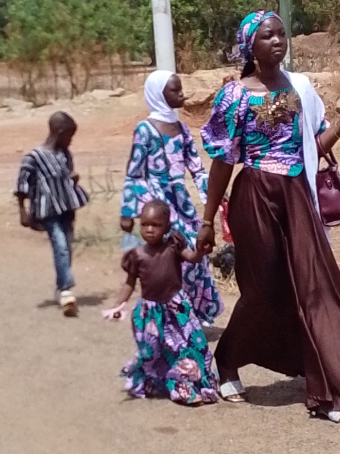 - "An outdoor scene in Sabaa, Ghana, captures four individuals walking from left to right on an unpaved, light brown dirt road under bright daylight" by FM-2KSU42, licensed under CC BY 4.0