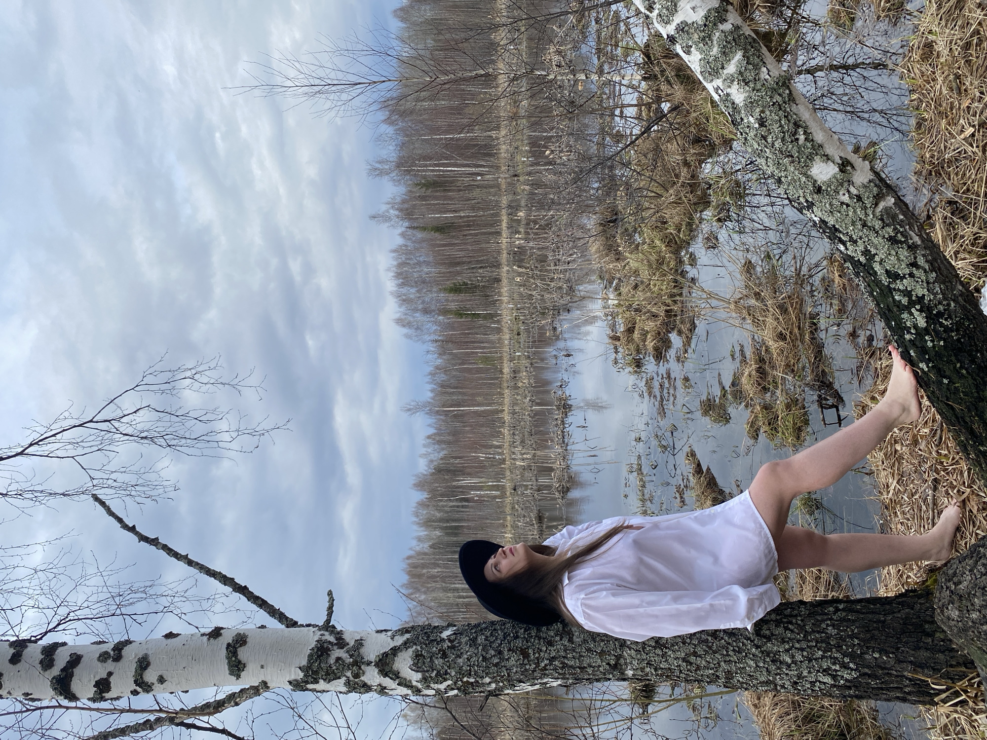 - "The image depicts a woman lying on a birch tree trunk in a wetland environment" by FM-9IRwJ3, licensed under CC BY 4.0