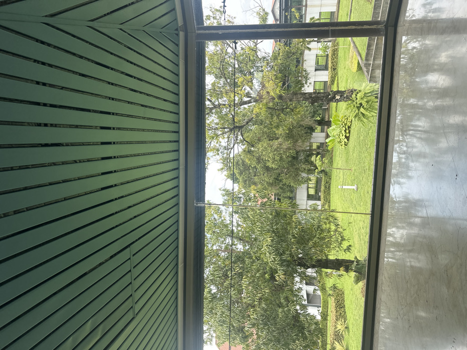 - "The image presents a view from inside a structure looking out through large, clear glass windows into a landscaped outdoor area" by FM-dya8j2, licensed under CC BY 4.0