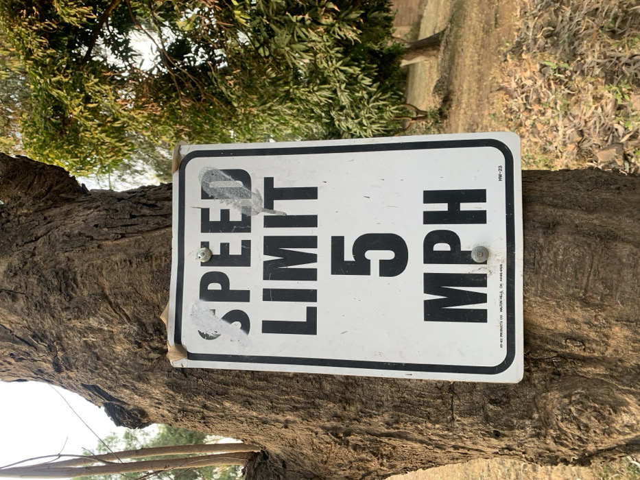 - "A "Speed Limit 5 MPH" sign is nailed to a tree trunk" by FM-hWfhv1, licensed under CC BY 4.0