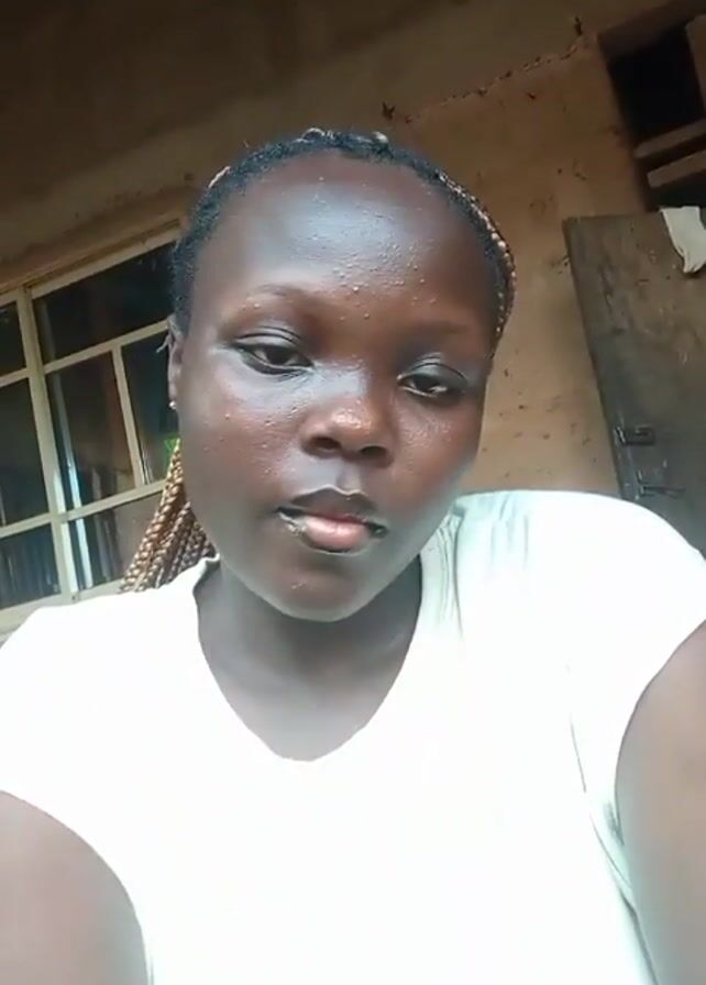 young woman with braided hair wearing a white T-shirt. She is looking directly at the camera and licking her lips. The background includes a window with bars, a wooden door, and a wall that appears to be made of clay. The video quality is somewhat grainy, and the lighting is natural. The text "Infinix HOT" is visible in the lower left corner of the screen.