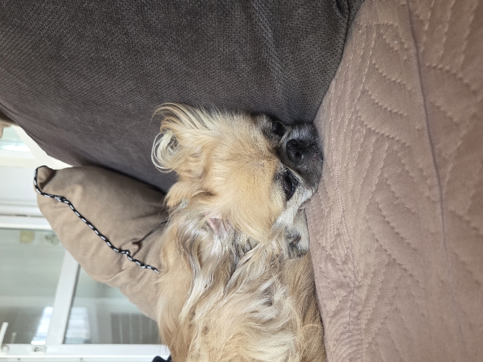 - "An indoor scene in Tompsan, Bulgaria, shows a small, light-brown furred dog resting on a fabric sofa" by FM-H5dlT2, licensed under CC BY 4.0