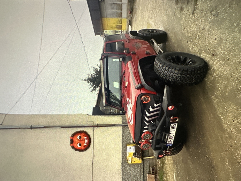 - "A red two-door Jeep Wrangler, heavily customized for off-road use, is parked outdoors on a wet, gravelly surface in Lukovit, Bulgaria" by FM-wMlkx1, licensed under CC BY 4.0
