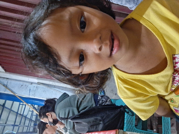 - "A close-up image depicts a young child, possibly female, with dark, curly hair and a yellow t-shirt, positioned in the foreground and looking directly at the camera with a slightly open mouth" by FM-2BqEw2, licensed under CC BY 4.0