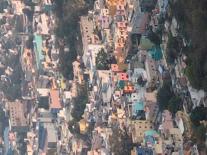 - "This image presents an elevated, wide-angle view of a densely packed urban area in Tiruvannamalai, India, observed during daylight hours" by FM-M0G9X2, licensed under CC BY 4.0
