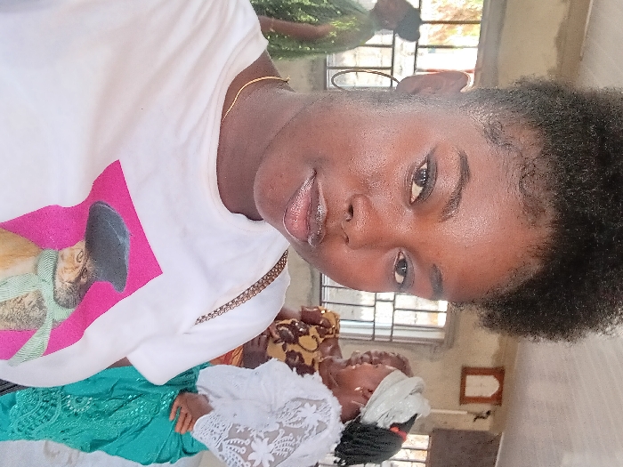 A selfie-style portrait captured in Lokoja, Nigeria, depicts a young Black female positioned centrally, looking directly into the camera with a neutral expression