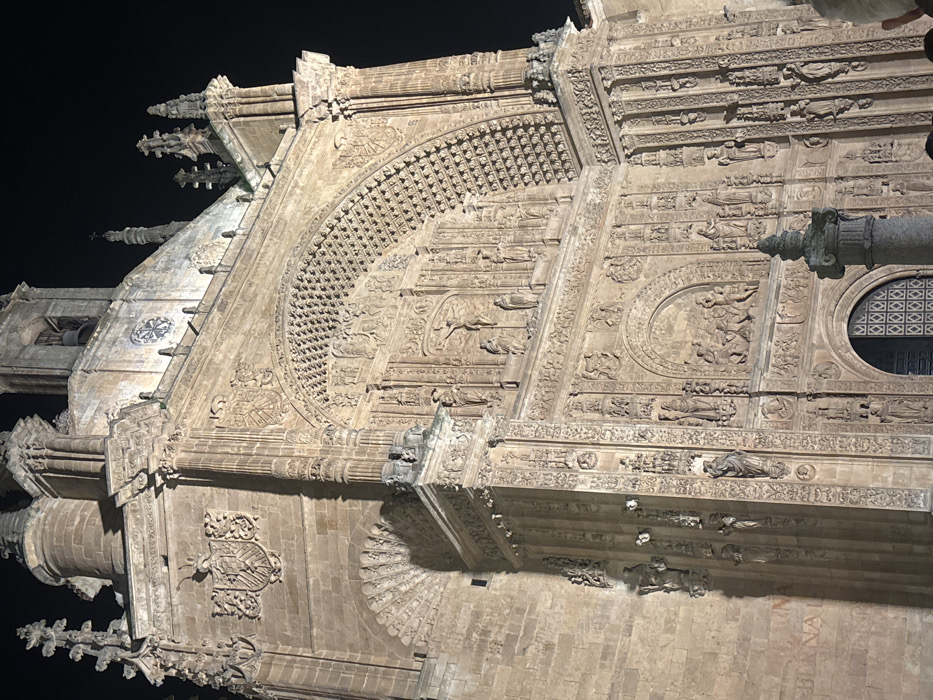 - "The image displays the illuminated Plateresque facade of the Convento de San Esteban in Salamanca, Spain, viewed at night" by FM-7ov5C3, licensed under CC BY 4.0