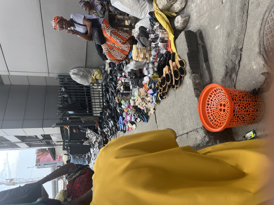 - "This image captures a bustling daytime street market scene in Lagos, Nigeria, set on a concrete sidewalk adjacent to a modern, multi-story building with grey paneling" by FM-marMB2, licensed under CC BY 4.0