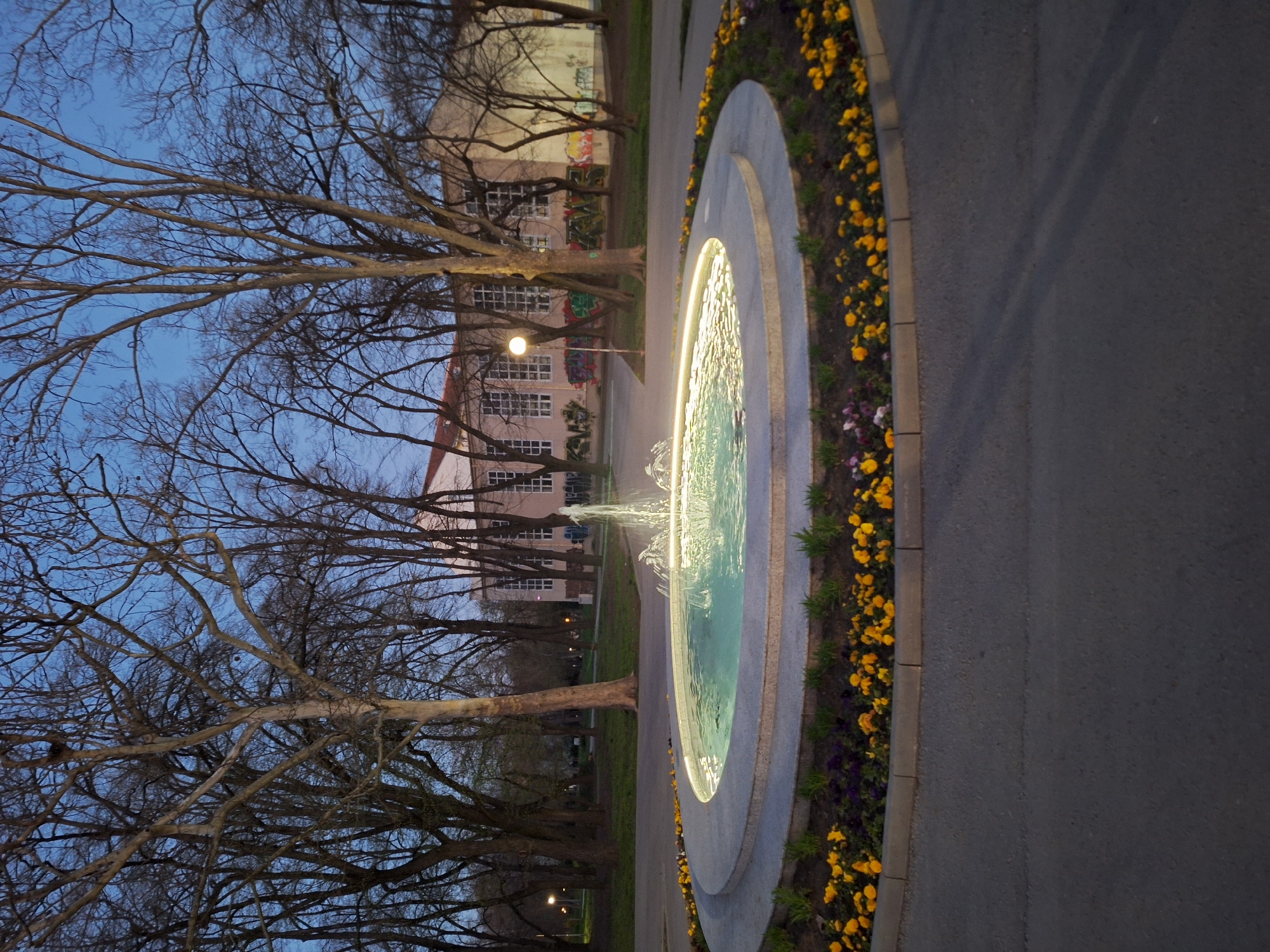 - "The image depicts a circular fountain in a park-like setting, likely taken at dusk or early evening in Ruse, Bulgaria" by FM-IFgRt2, licensed under CC BY 4.0