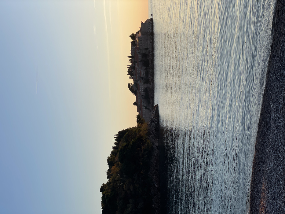 - "The image presents a wide-angle view of the coastline near Pržno, Montenegro, focusing on the island-hotel of Sveti Stefan during either sunrise or sunset" by FM-mkWXI3, licensed under CC BY 4.0