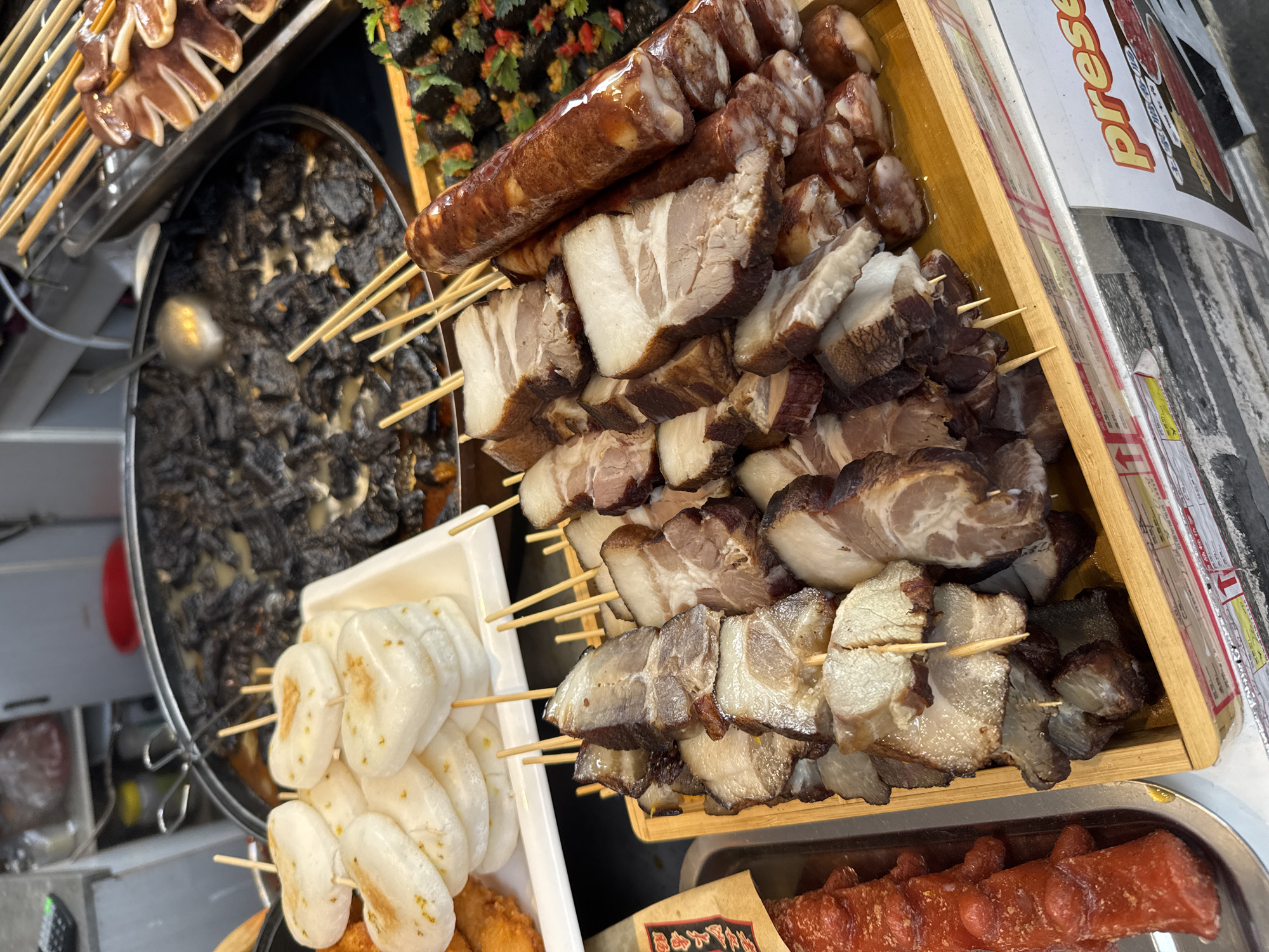 - "This image depicts a food stall in Luoguta, China, showcasing a variety of prepared street food items for sale" by FM-7eaFY2, licensed under CC BY 4.0
