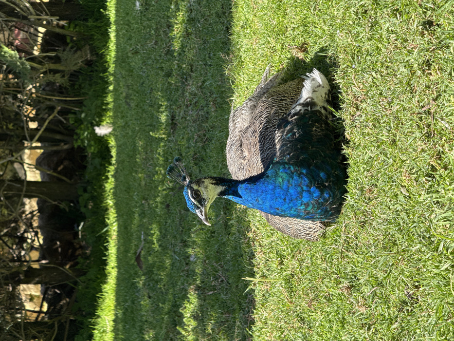 - "A single peacock is observed resting on a patch of green grass, positioned centrally within the frame" by FM-8JC2m2, licensed under CC BY 4.0