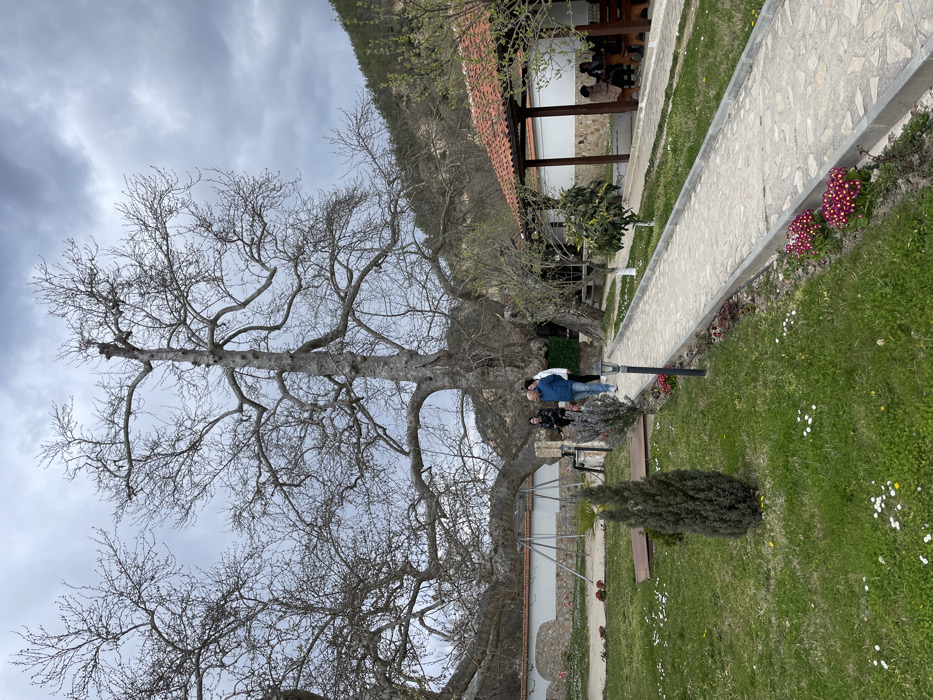 - "The image displays an outdoor scene within what appears to be a historical or monastic courtyard in Melnik, Bulgaria, under an overcast sky" by FM-jfgMi1, licensed under CC BY 4.0