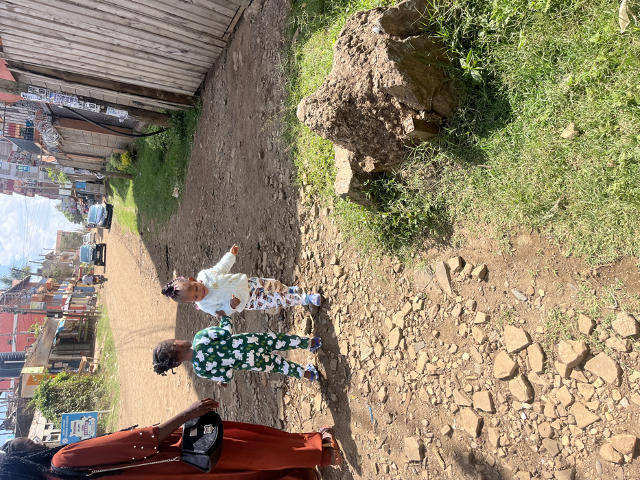- "The scene depicts a daylight view of an unpaved road in Gatongora ward, Kenya, with three individuals in the foreground and urban development in the background" by FM-uKekr2, licensed under CC BY 4.0