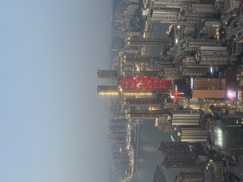 - "This image presents a high-angle, wide-view photograph of a dense urban environment in Yuzhong District, Chongqing, China, captured during dusk or early night" by FM-ZX7hz1, licensed under CC BY 4.0